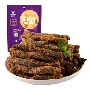 源自内蒙古科尔沁,精选上等牛后腿肉,经过手工切割、自然风干、高温杀菌而成,肉香浓郁,肉质紧实,口感饱满有嚼劲。
