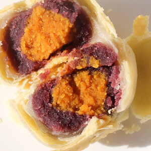 紫薯蛋黄馅料,巧妙的组合搭配,散发着香气,饱腹代餐的好选择。表皮折叠工艺,反复涂抹蛋液,外酥内软,层次分明。