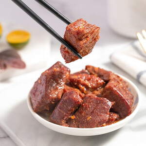 采用牛臀肉制作而成,搭配朝天椒和现炒芝麻粒,造就鲜香辣爽的美妙口感。打开包装散发浓郁肉香,令人垂涎不已。 上榜理由: