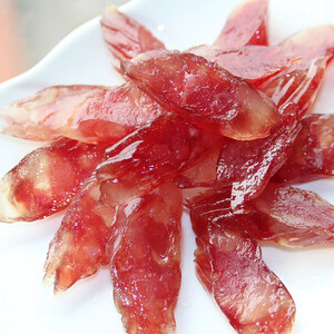 这款香肠以肥瘦均匀的猪肉作原料,采用先进的烘干技术制作而成,口齿留香。