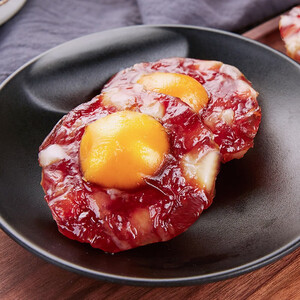 以肥瘦相间的猪肉作原料,经过多道工序加工制作而成,肉质紧实,口感醇香。
