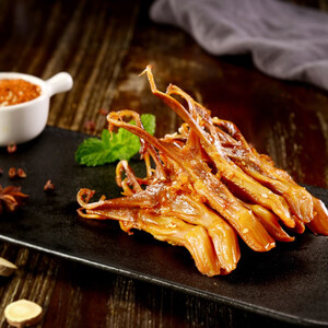 鸭舌以传统工艺卤制而成,卤香入味,味道更加醇厚,其肉质紧实富有弹性,香辣不腻口,令人回味无穷。