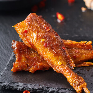 小黄鱼经低温油炸,香酥微辣,没有腥味,肉质也不错,吃起来很有感觉。闲暇时吃一些,美味可口,放在办公室里当小零食也很不错。 上榜理由: