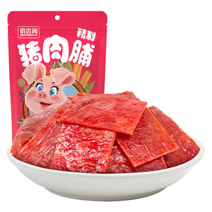 精制靖江风味的猪肉脯,肉感紧实很有嚼劲,原材料精心挑选,肉片平滑包装精美,口感丰富,回味无穷。