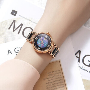 白搪瓷盘面色泽洁白亮丽,塑造干净利落的职场气质。亲肤陶瓷表带,光滑舒适佩戴不夹汗毛。