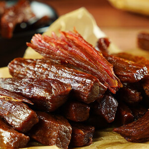 选用优质牛肉,加上手工切条的方式,减少多余的筋膜成分,保留精华部分。加上天然的香辛料进行腌制,令牛肉更加入味。 上榜理由: