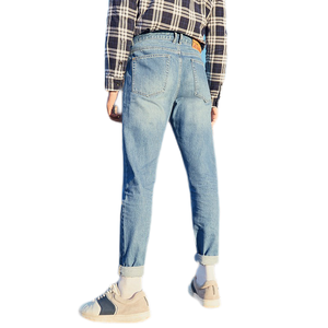小脚裤造型日常百搭,搭配上衣能塑造良好腿型。做旧的工艺,让裤子带有文艺复古感。