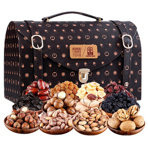 甄选多种原料,内有丰富多样的坚果或果干,满足您挑剔的胃,搭配精美礼盒包装,有颜又有料,走亲访友倍有面子。