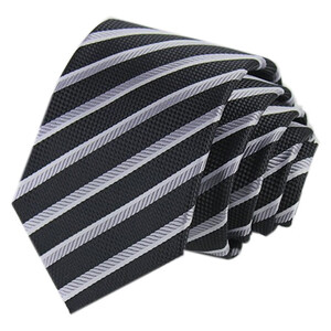 一款英伦风格的领带,百搭时尚的黑色调,配斜纹元素,凸显男士优雅气质。