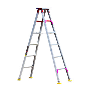 选用优质铝合金材质内部双立柱设计,承重力好,久用不易变形,脚踏内嵌橡胶条,攀登不易滑。梯脚底部胶套,室内室外都适用。 推荐商品