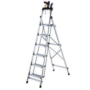 选用坚韧耐用的航空铝合金制作,强度硬度韧度都很高,使用安稳轻便。结合加宽的顶踏板,站在顶端作业也能如履平地。 上榜理由:
