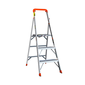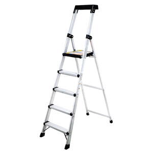 家用梯顶部自带工具台,工作时可将工具随手放置在工作平台上,让你无需频繁上下梯子拿工具,能有效提高你的工作效率。
