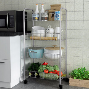 一款免安装的置物架,打开即可使用,操作起来简单方便,搭配底部滚轮设计,可灵活移动,不受空间限制。