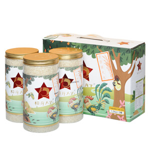 大米颗粒饱满,韧劲十足,装在绘制了田园风光的罐子里,设计感明显;用来发福利、送礼均可,格调明显。