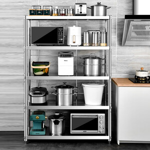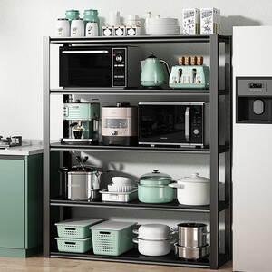 拥有四层储物空间的置物架,有效加大收纳容量,调料用品、厨具小家电均可放入,打造整洁有序的厨房空间。