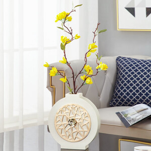 一款大理石纹理的陶瓷花瓶。纯白瓷底,细腻温润。装饰以大理石纹理,深浅交织,错落有致。几何切面效果,增添一分利落清爽。