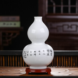 葫芦瓶的设计,当家居摆件也很品味,瓶子上的刻字诗意满满,犹如一件艺术品。