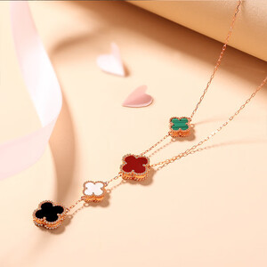 撞色元素点缀,配色精美大方,佩戴洋气不失少女风范。四叶草吊坠,样式简单修饰脖颈,有效拉长脖颈线条打造视觉之美。