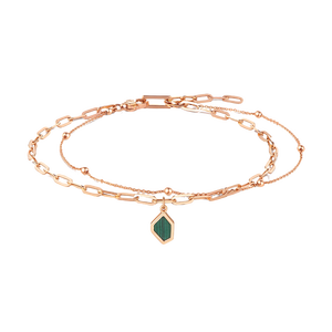 链身主体以型格链条和俏皮的小圆珠为主,双层叠戴设计,时尚大方。搭配不规则设计的孔雀石,给人高贵的感觉。 上榜理由: