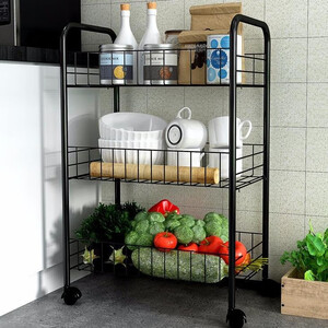 厨房多层置物架大容量的网篮,带有防滑围边避免物品掉落;加高的底脚拖把扫帚可以伸入方便清扫,圆润的扶手握感舒适。 上榜理由: