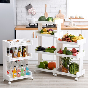 这款置物架采用了分层设计,占地小,收纳多,带有轮子的设计,方便随时移动。
