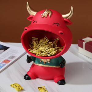 红色外观设计,搭配金色牛角造型,吉祥喜庆,气势更足。采用八字坐姿,底座更加稳固,避免摔倒。