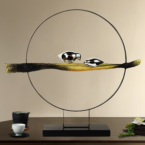 新中式 | 圆形的框架,有着禅意的韵味。摆件的底座宽大,放置稳定。金属材质制作的摆件,安全牢固且不易生锈。