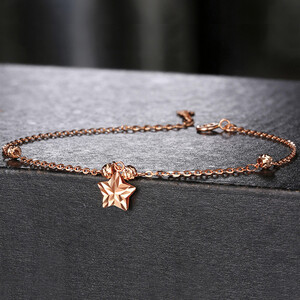 尾链可调的K金手链,佩带舒适易调节,采用优质的K金材质,暖暖的玫瑰金色,光亮持久不脱色,还配有撞色的小星星,活泼减龄。 上榜理由: