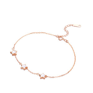 光泽温暖的玫瑰金手链,甄选18K金材质打造,不易过敏,佩戴更安心。折射出幻彩纹理的星星饰物,个性惹眼,充满浪漫时尚感。 上榜理由: