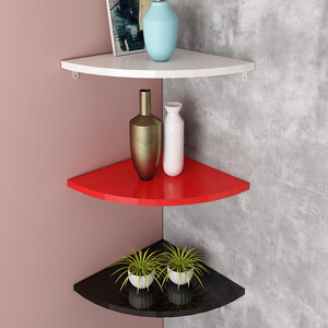 转角扇形设计的置物架,安装便捷,能够合理利用空间。采用颗粒板材设计,结合pvc封边,平整光滑,耐磨损更耐用。