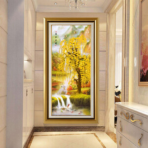 这是一款竖版山水画,富有美好的寓意,适合挂置于玄关处。加之创意双框设计,凹凸有致,可提升家居格调。
