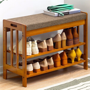 这款鞋架两边圆润把手设计,搬运更轻松,竹制材料打造,具有防潮防尘的特点。