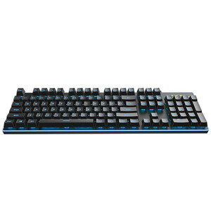 它采用类机械轴体,按键的触感更加柔和,火山口键帽与指尖相契合,长时间打字更舒适。与此同时,蓝色背光也十分美观!