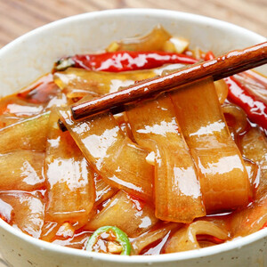 利用红薯为原料,传统手艺使每一根都充满嚼劲,久煮不浑汤,色泽晶亮,醇香扑鼻味道鲜美,营养丰富。适合熬炒和凉拌。 上榜理由: