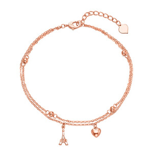 铁塔与爱心吊饰组合,浪漫唯美。18K玫瑰金材质,闪耀迷人,双层手链设计,灵动优雅。