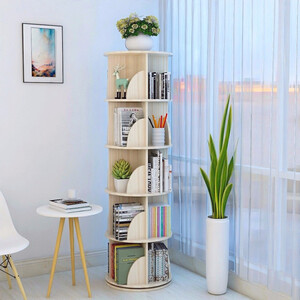 巴然无油漆实木旋转书架