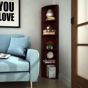 慧乐家五层转角书架的表面更加圆润,不易磕碰受伤。书架颜色深红,看起来美观大气。