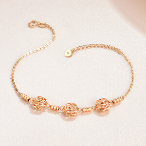 这款吾昔彩金手链,简约时尚款,采用了转运珠式的镂空圆球吊坠造型,精心抛光的三色圆珠与闪耀的O型链相连,寓意好运相连。 上榜理由: