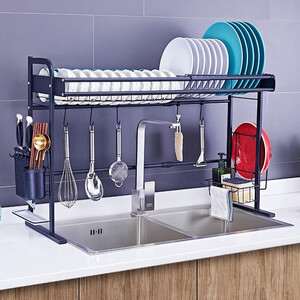 放置于水池之上的置物架,更好的利用空间,整洁大气。能轻松收纳碗盘、铲子等多种用具,功能丰富。