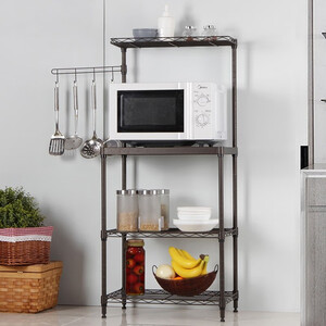 这款置物架具有多功能,可以满足厨房客厅等多场景的使用需求。优雅的纯黑色,可以轻松融入多种家居风格。