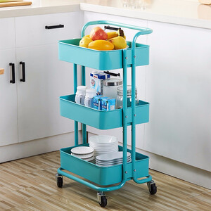 亮眼的蓝色调,为家居空间增添颜值,很是吸睛。优质耐用的滚轮,搭配扶手设计,方便进行推拉移动。