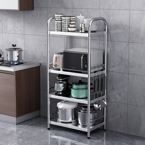 采用加粗立柱与横梁,置物架牢固耐用不变形,承重再多也不怕。不锈碳钢材质结合喷涂工艺,防水防锈持久如新。