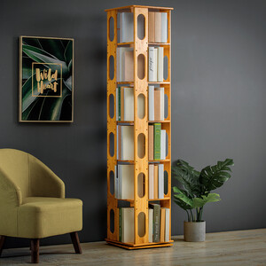 淘之良品简易书架采用楠竹材质制成,经过清漆涂抹,清新无异味。底部采用金属旋转底盘设计,方便旋转,更好的拿取书籍。