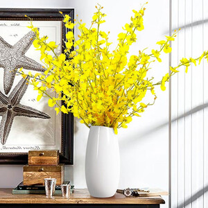 纯白的外观设计,创意新颖,打造时尚有个性的家居空间。仿真花朵,亮丽吸睛,点缀花瓶的整体质感。