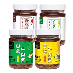 精选竹笋牛肉酱、鲜椒牛肉酱和白蘑牛肉酱等四款美食组合,款款用料十足、色鲜味美,换着来吃不会觉得腻,带给味蕾更多享受。