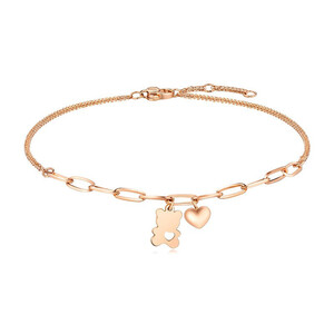 较大的O型圈相互连接,既保证手链佩戴的舒适度又给手链增加了几分都市潮流感。手链上悬挂一个小熊和一颗爱心别具趣味。 上榜理由: