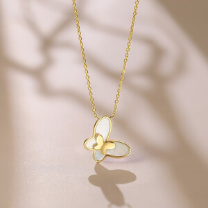 18K金材质打造栩栩如生的蝴蝶梦幻元素,富有层次感,轻盈灵动,母贝光感强,款式时尚新颖,佩戴在颈间尽显优雅气质。 上榜理由: