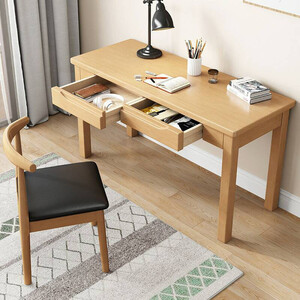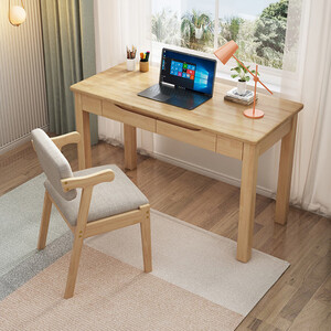 八字型实木桌腿,结构稳固,强悍承重力,牢靠不摇晃;宽大的桌面与双抽大储物设计,提升空间利用率,保证桌面不杂乱。 上榜理由: