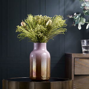 柔和的曲线勾勒出花瓶简约的器型,圆滑的瓶口与光洁的瓶身带来细腻手感。紫色与金色交融出金属光泽,点缀金箔,绮丽迷人。 上榜理由:
