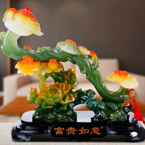 精美的如意摆件,经过细致的雕刻工艺处理,每一个细节都呈现出灵动美感,配上仿真珠宝点缀,大气中又不失典雅。